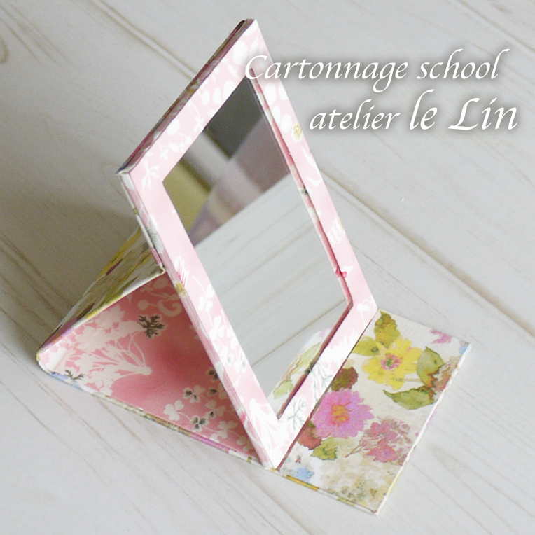 リバティの折りたたみミラー(カルトナージュ アドバンス作品) 2017/9/17 アドバンス作品 アドバンス作品、折りたたみミラーです。 リバティの水彩画のような生地で作りました。 リバティの生地は薄めなので、ボンドが滲み出たり、皺なくキレイに貼るのが少し難しいのですが… 持ち歩くものは少しでも軽く、コンパクトにしたくってあえてリバティ生地で作ってみました。 13cm×9cmの小さいサイズ。 持ち運びにも便利です(^^) メイクの時は斜めに立てて*^^* 実用的なカルトナージュ♪ 毎日使うものを手作りすると、嬉しくなりますね♡