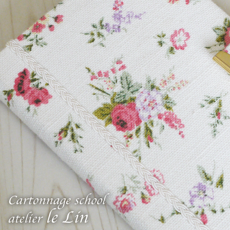 ローラアシュレイの手帳カバー(カルトナージュ アドバンス作品) 2017/7/31 アドバンス作品 大阪・高槻のカルトナージュ教室アトリエルランです。 ただいま体験レッスン募集中です! お気に入りの生地 ローラアシュレイ ノットグローブ ローズ 手帳カバーを作りました。 細いブレードがさりげなくて可愛い♪ 中には小さなポケットもつけられます。 お手持ちの手帳に合わせて 好きなサイズでお作りいただけます。