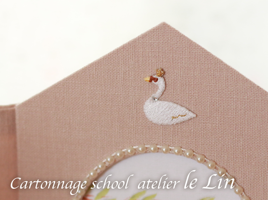 得意な方なら、カルトナージュ作成の前に布に刺繍をしておいても素敵だと思います!