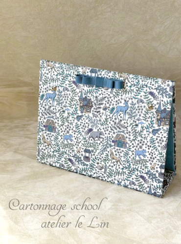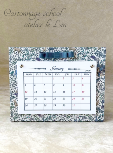 卓上カレンダー(生徒さまカルトナージュ作品) 2026/4/28 生徒さま作品 Hさまの作品です。 卓上カレンダーを作られました♪ 使用生地は、リバティ 【Black Forest】ブラック・フォレスト 義理のお姉様へのプレゼントだそうですよ♪