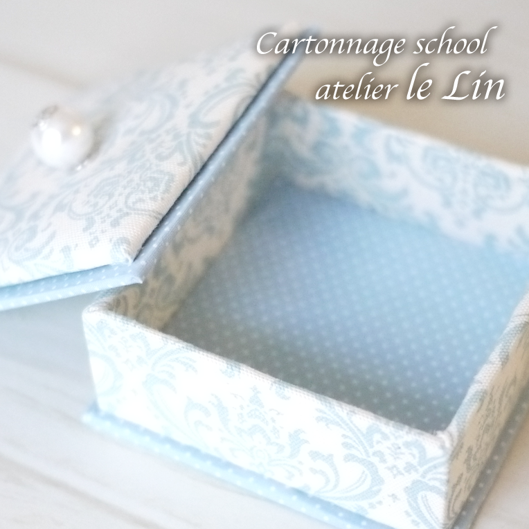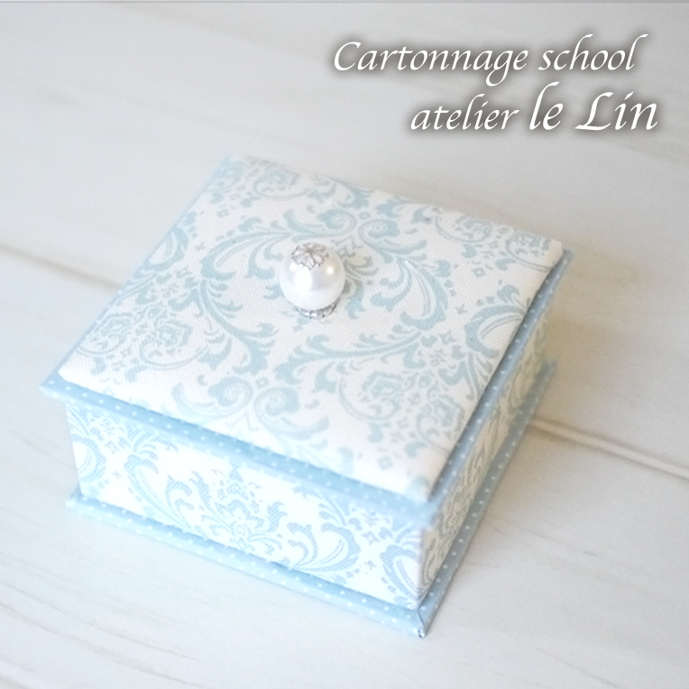 カルトナージュ体験レッスン♪ダマスクの小箱 2017/10/14 体験レッスン, 生徒さま作品 体験レッスンにお越しくださいました、Yさま シャポーの小箱です。 人気の、松尾捺染ダマスク柄。 Yさまは水色がお好きなんだそう。私も好きです♪ カルトナージュは経験ありとのことでしたが とっても丁寧に作業されていました。 来月から趣味のコースで通ってくださいます♪ よろしくお願いいたします。 ***** カルトナージュ教室アトリエルランでは、 体験レッスン随時受付中です。 まずは簡単な作品から、ゆるりと体験、いかがですか?(*^^*)