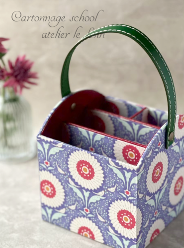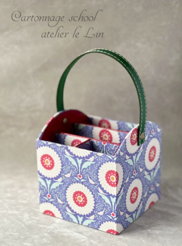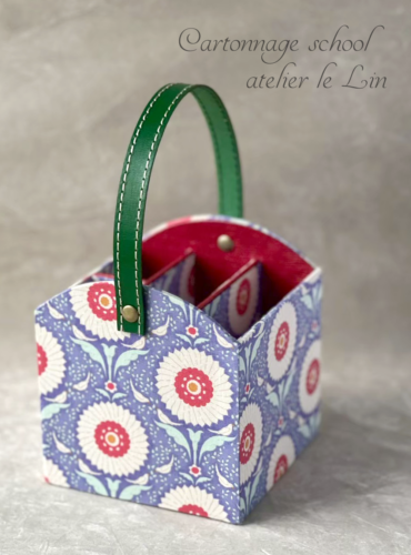ティルダのメガネスタンド(生徒さまカルトナージュ作品) 2025/12/29 生徒さま作品 Tさまの作品です。 ティルダの生地で、メガネスタンドを作られました。 花柄の真ん中の部分とリンクさせて、内側は赤のスキバル。 持ち手はグリーンをチョイスして、とても雰囲気のある仕上がりに♪ ティルダって、北欧の生地ながら、不思議と和の雰囲気にも合う柄や色づかいなんですよね(*^^*)