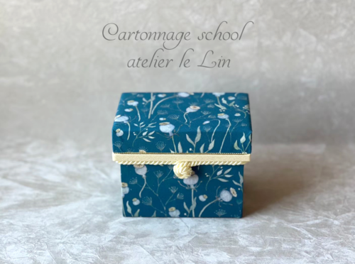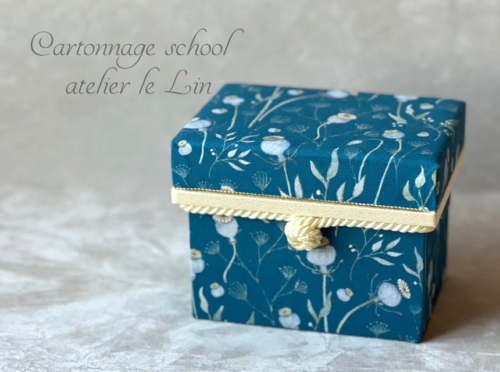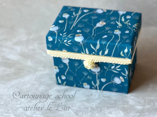 アクファクトゥムのミニ茶箱 2026/4/17 お茶箱, 生徒さま作品 Uさまの作品、ミニ茶箱です。 布はアクファクトゥム ケシのつぼみ ブルーとイエローの色合わせが素敵です(*^^*) ナチュラルでとっても可愛いミニ茶箱です♡