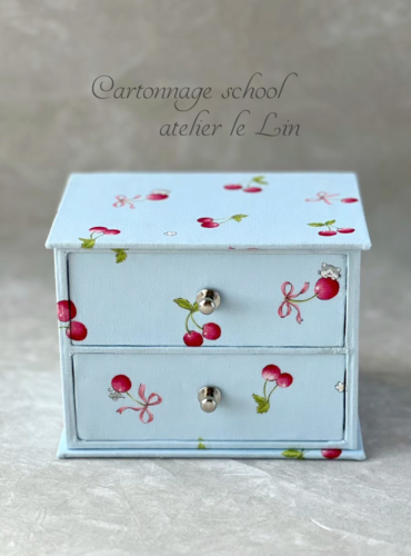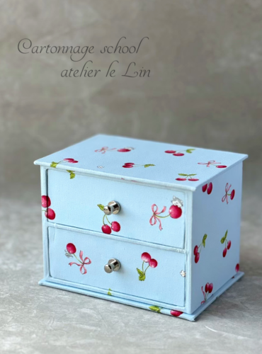 • さくらんぼのミニチェスト(生徒さまカルトナージュ作品)
