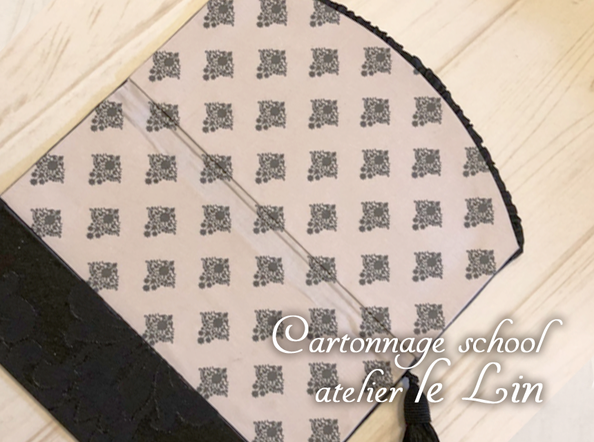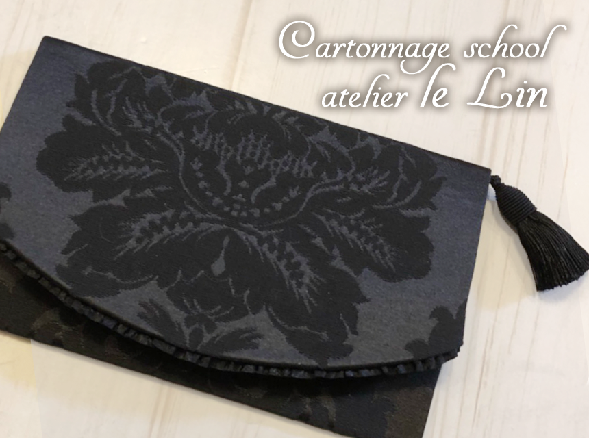 お悔やみ用袱紗(生徒さまカルトナージュ作品) 2018/1/21 生徒さま作品 Sさまの作品、お悔やみ用袱紗です。 光沢のある大柄の黒い生地を美しく柄出しされました。 内側はダマスクで。 綺麗に柄合わせされました(^^)