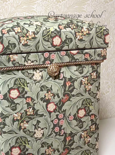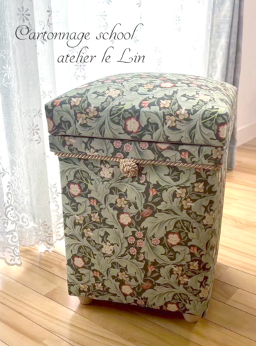 ウィリアムモリスのお茶箱スツール(インテリア茶箱) 2026/3/9 お茶箱, 生徒さま作品 Uさまのお茶箱作品です。 ウィリアムモリスで、スツールを作られました。 ウィリアムモリス 【Leicester】レスター 華やかなのに落ち着いたカラーのモリス。素敵♡ コンパクトな腰掛けになるお茶箱。おすすめのサイズです♪