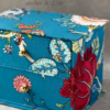 トワル・ド・ジュイの荷物入れ(生徒さまカルトナージュ作品) 2020/4/11 生徒さま作品 Tさまの作品、大型収納ボックスです。 フランス製のトワルドジュイ ホワイト地にネイビーの、ブランコに乗った少女♪ クラシックで素敵ですね♡ 内側はホワイトのスキバル。 汚れたり、埃がたまったりしても拭くことができます。 フタがないぶん、わりと埃が入りやすいので、スキバルで作っておくとお手入れが楽なんです♪ 大きな作品は力もいるし、たくさんボンドを塗らないといけないので大変ですが、できあがると達成感です!^^