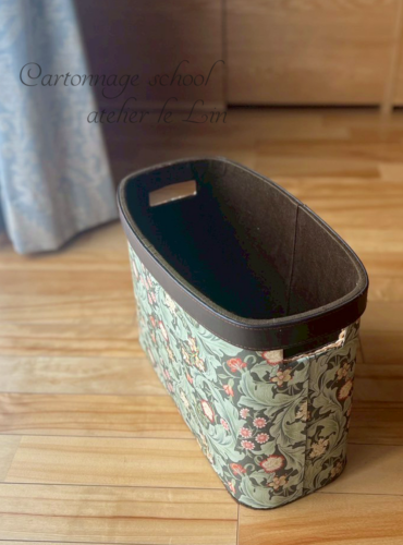まずはこちら。お家でもともと使っていらしたマガジンラックを猫ちゃんがガリガリして、ボロボロになってしまった…とのことで、布を貼ってリメイク♪
