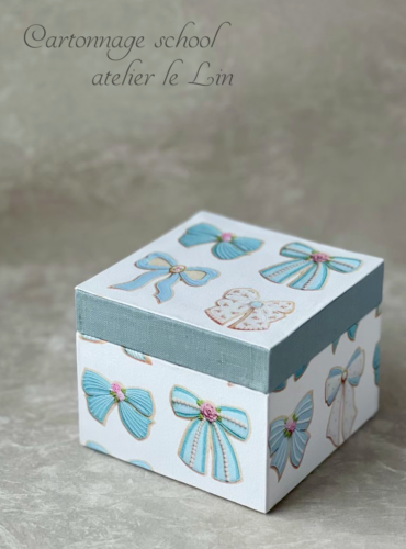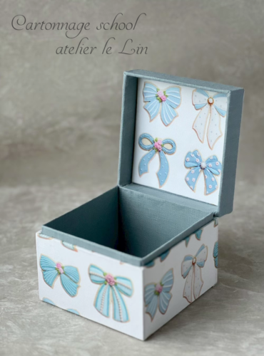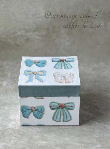 トランクスタイルのサイズを小さく変更して、リボンが各面に1つずつ入るように設計しても可愛いかも…なんて想像しちゃいました(*^^*)